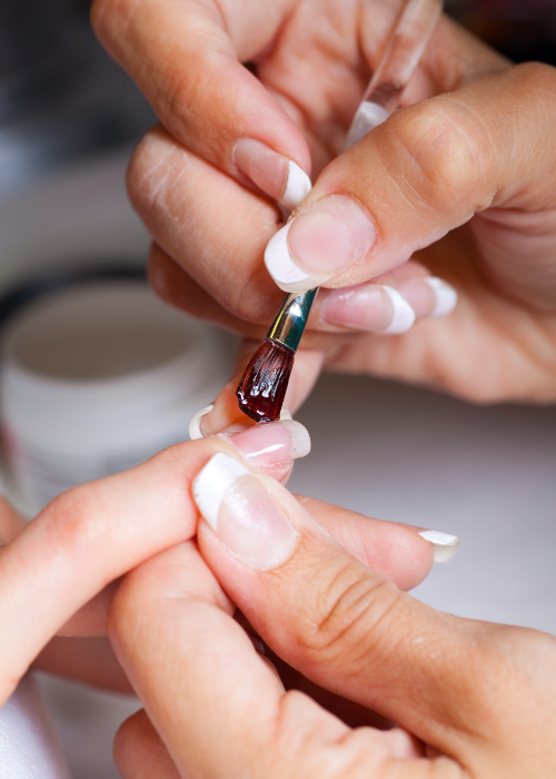 Your hands will be soaked in a warm, aromatic soak to soften the skin and nails. This step prepares your nails for easy shaping and cuticle care.
